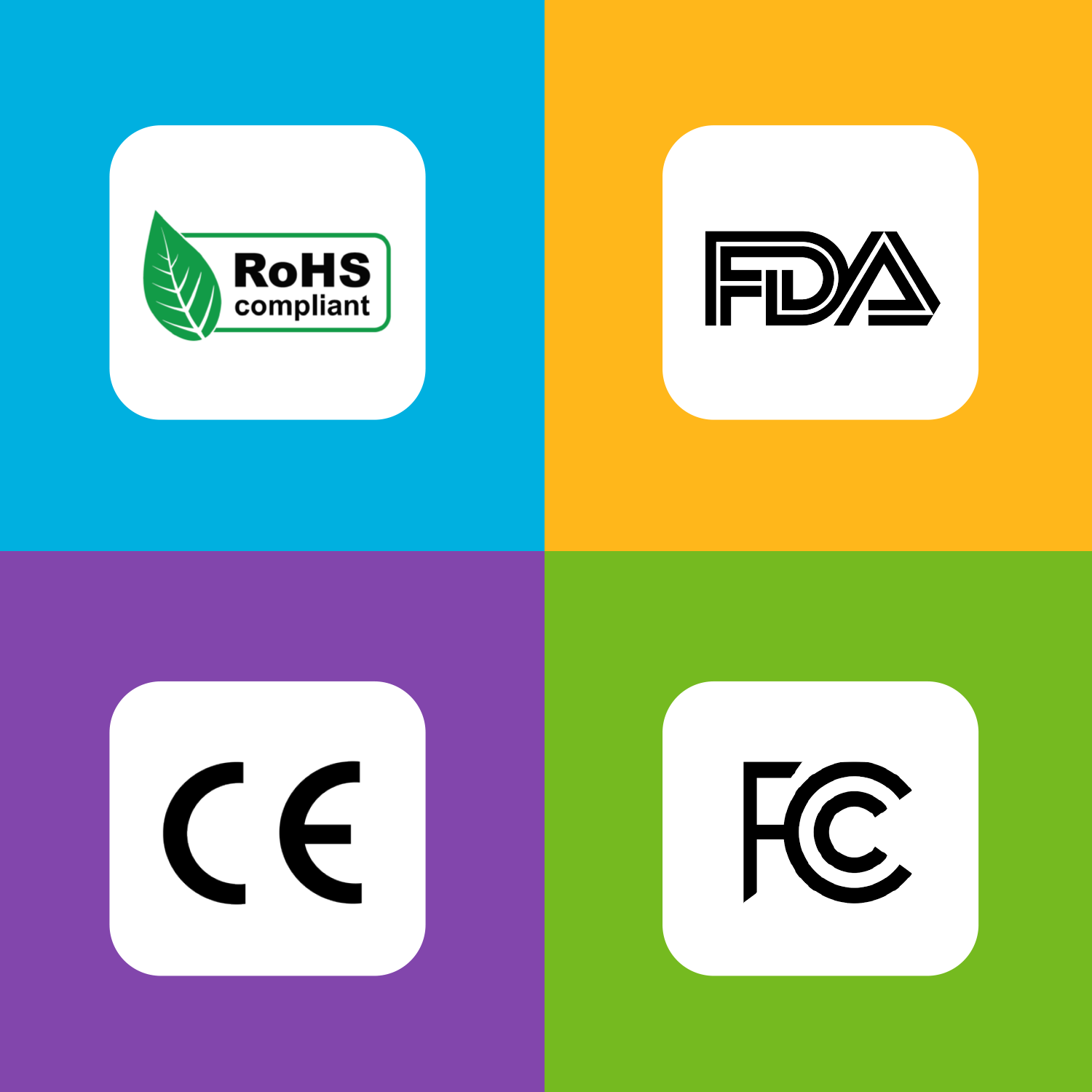 RoHS、CE、FCC、FDAの基準に準拠
