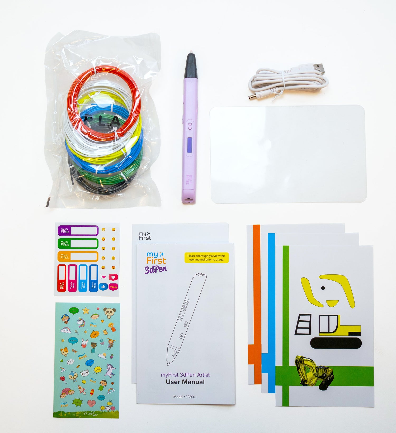 myFirst 3dPen Artistは、3Dプリンティングで一般的に使用されている安全で生分解性のプラスチックであるPLAフィラメントを使用しています。3Dプリンティングで使用される他のフィラメントと比較すると、PLAはより低い温度で溶けます。そのため、ペン自体が極端に熱くなる必要がない3Dペンに最適です。