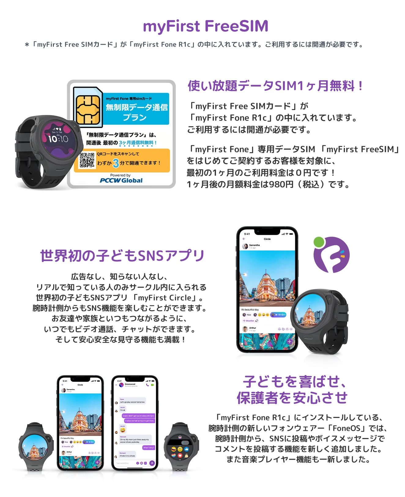 myFirst Fone R1c マイファーストフォン アールワン・シー (nanoSIM付属モデル)/双方向通話(ビデオ・音声)/リアルタイムGPS機能/カメラ/SNS機能