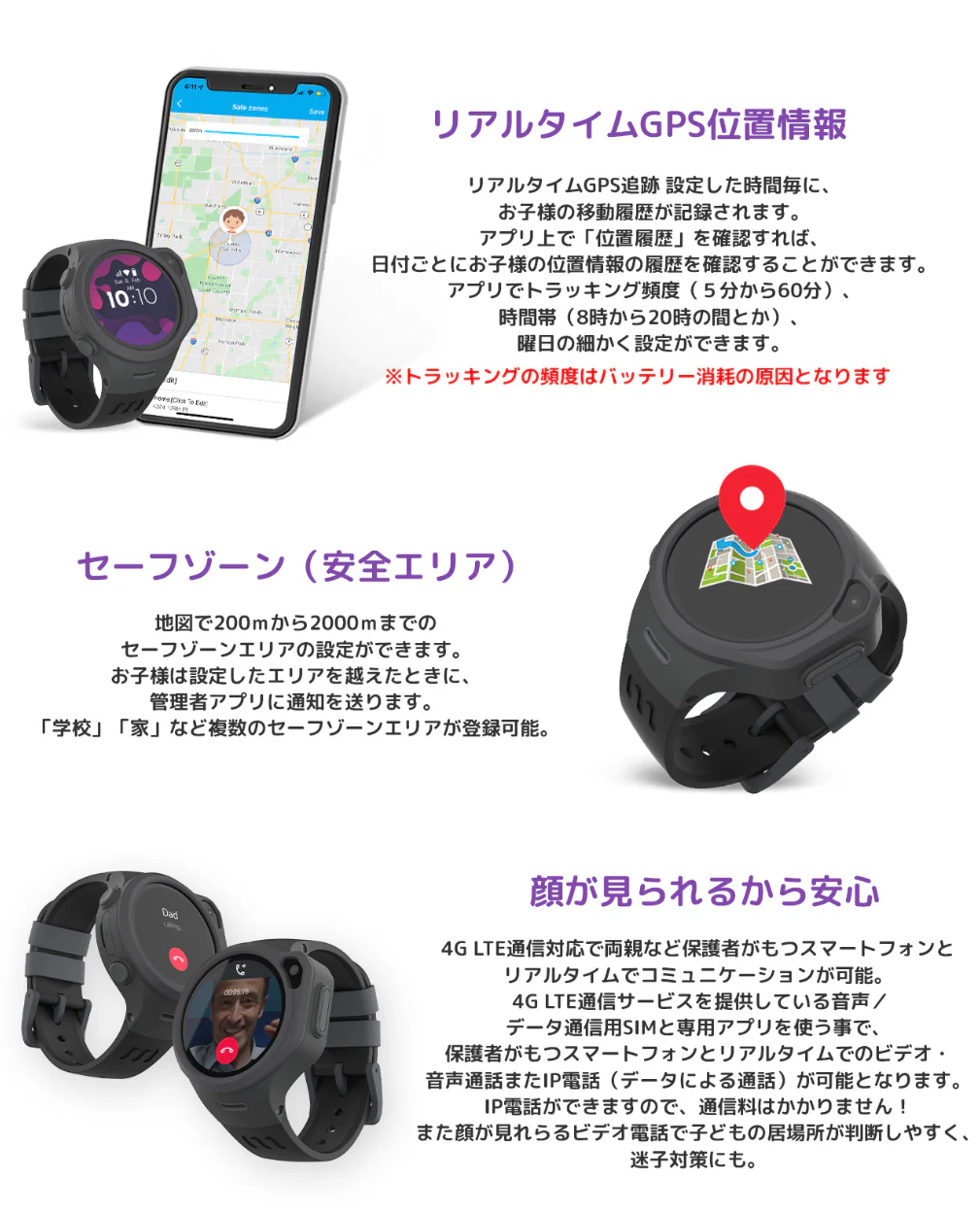 - GPS・Wi-Fi・A-GPS対応:リアルタイムで子どもの位置情報を確認。