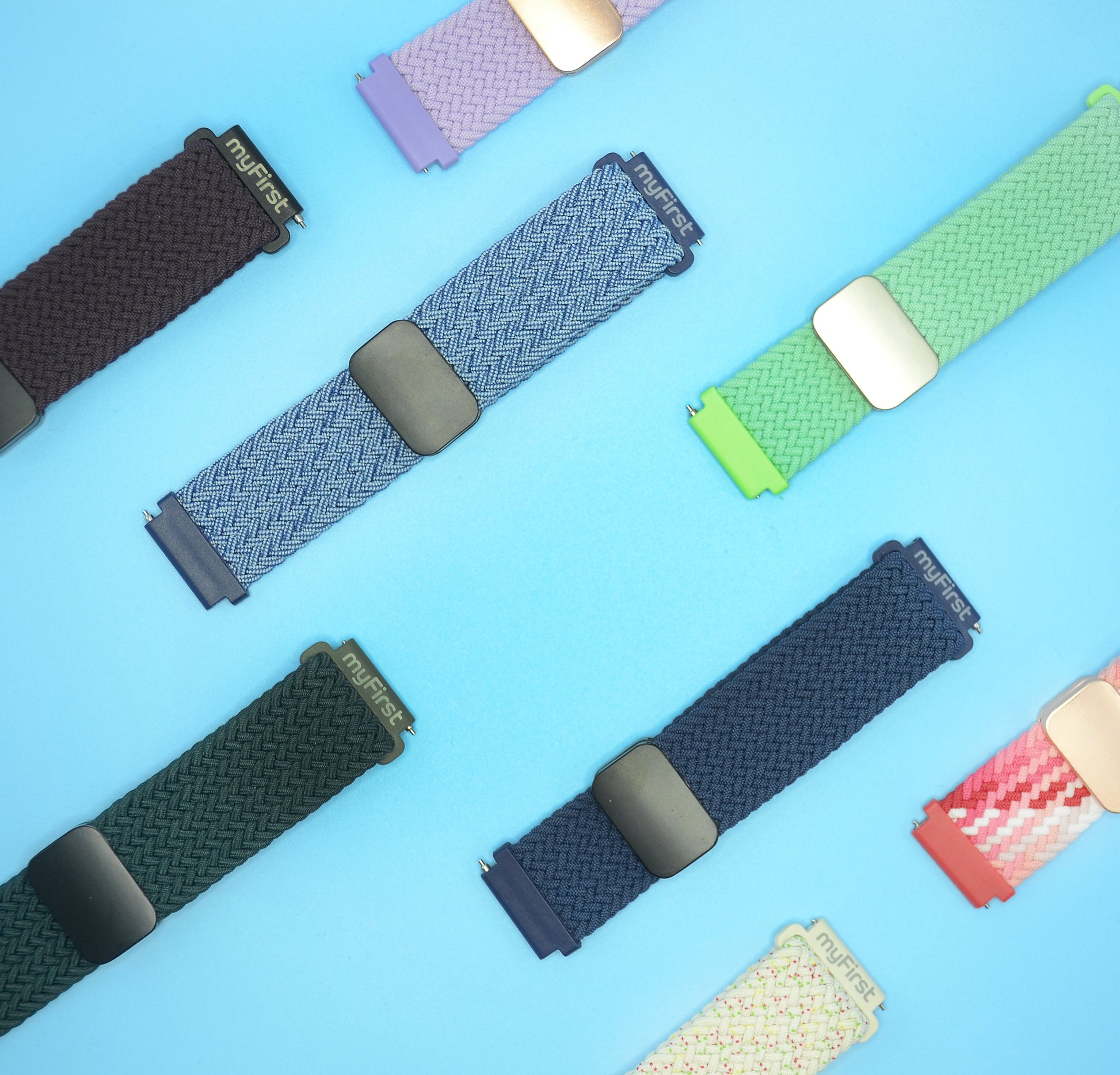 お子様のスタイルに合わせてストラップを変えましょう!交換可能なストラップは16色のシリコンとニット素材でご用意しています。スタイルや好みに合わせて自由に組み合わせてください。