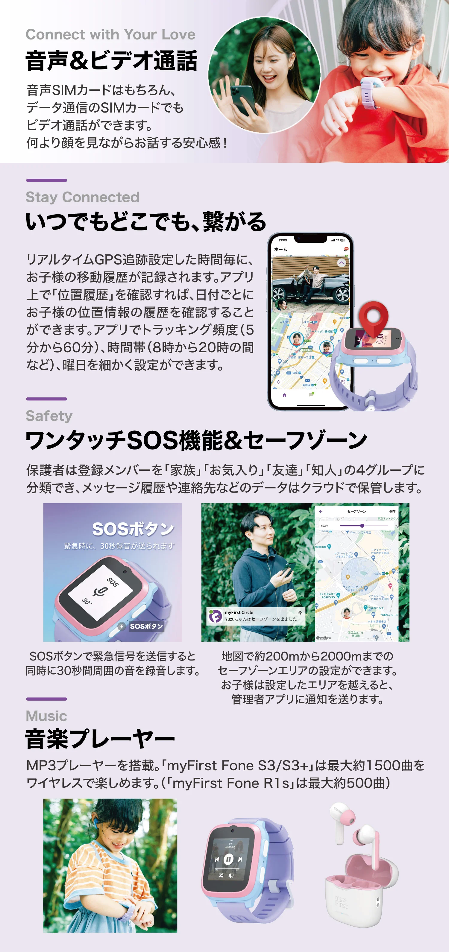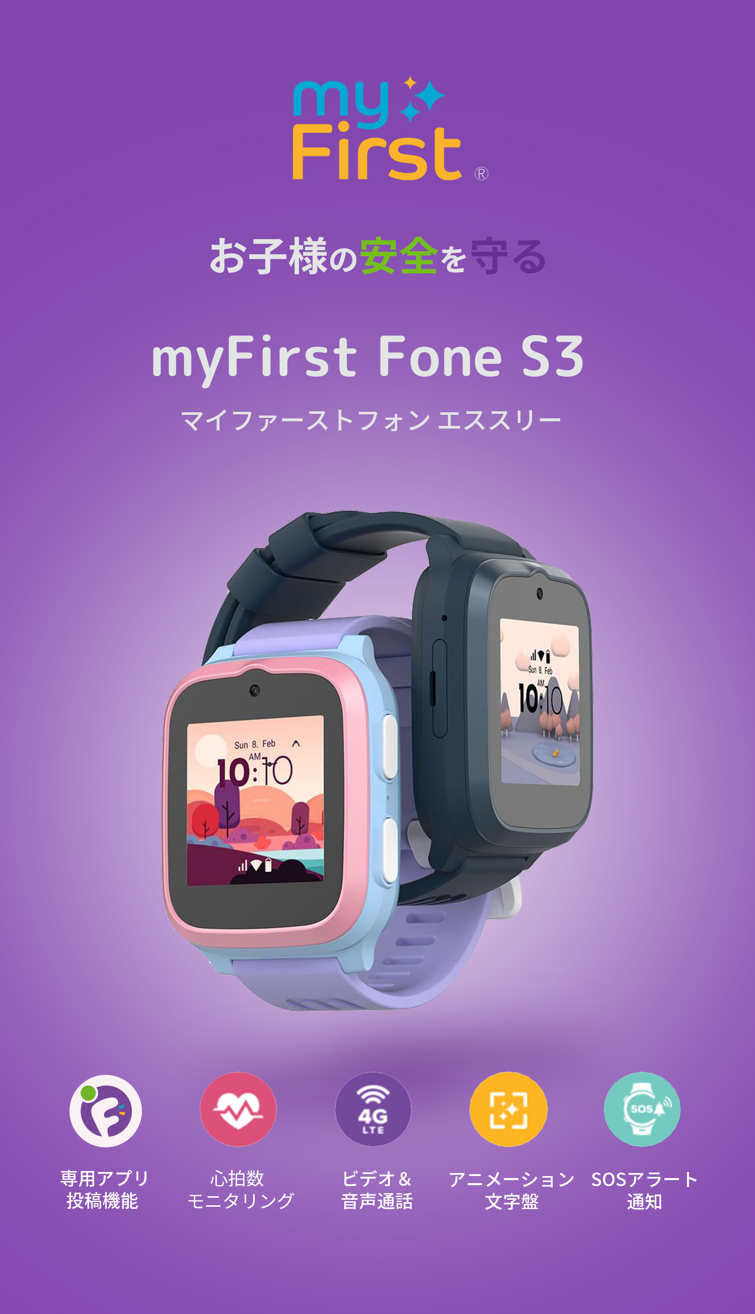 - myFirst Circleアプリ連携:家族専用SNS機能で安心コミュニケーション。