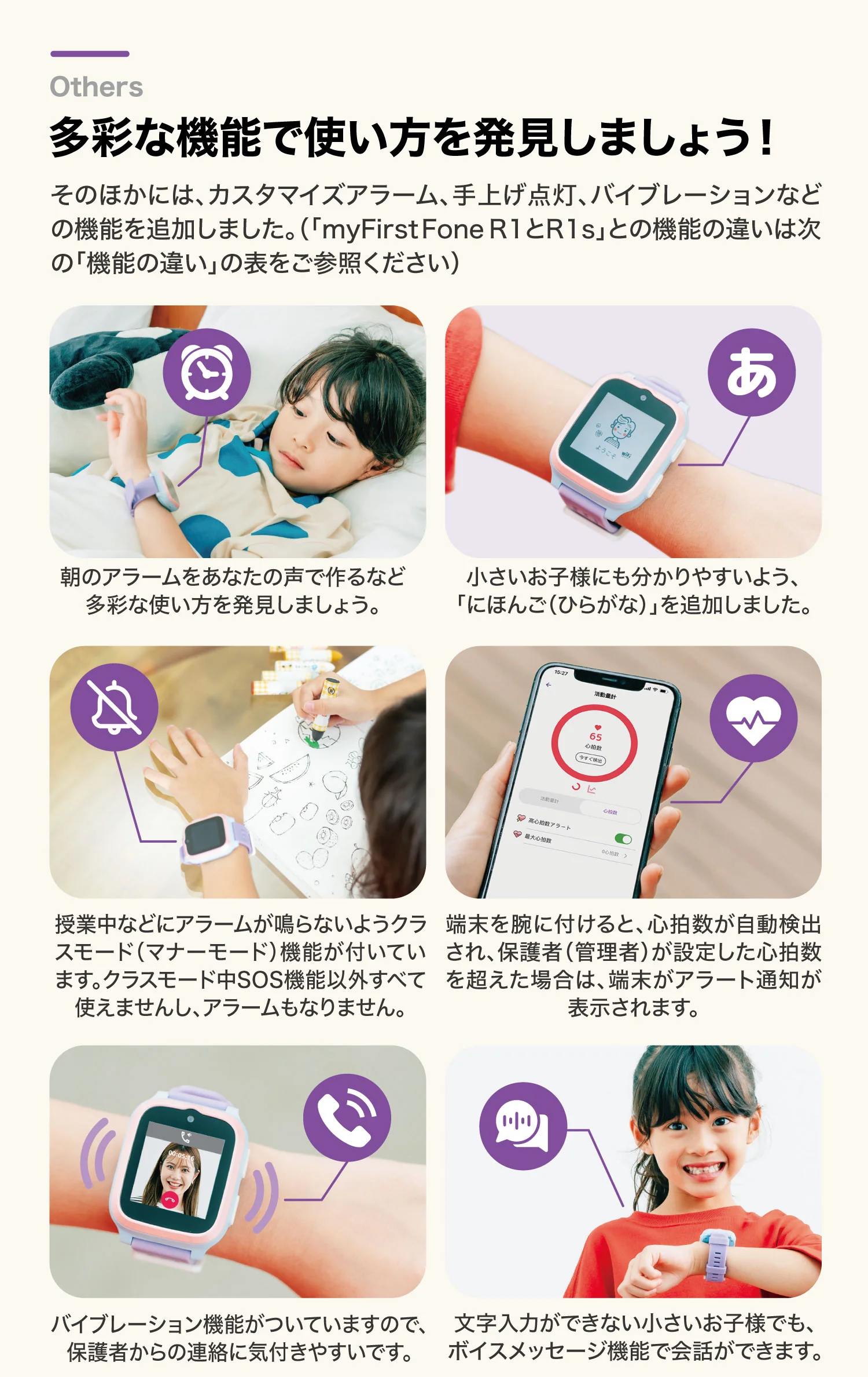 - 心拍数モニター:異常な心拍を検知して保護者に通知。