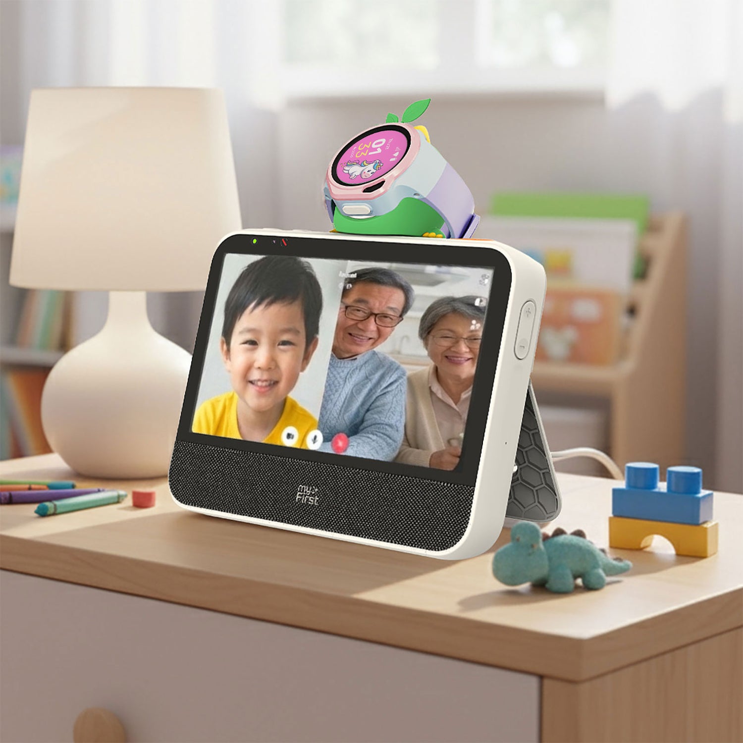 myFirst Camera 50を接続すれば写真をすぐ共有でき、myFirst Foneと連携すれば高画質なビデオ通話がフレームで受けられます。