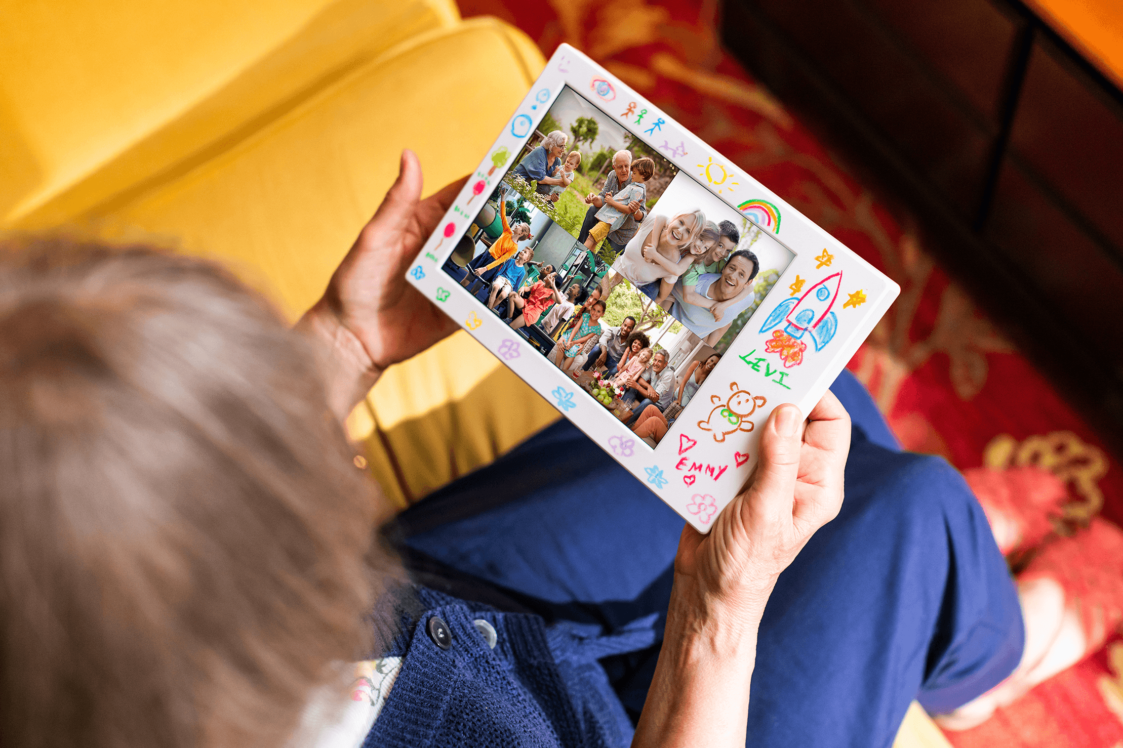 myFirst Frame Doodleは、フレームのケースに特別なドゥードゥリングエリアを備えており、子供たちが創造力を表現できるようになっています。子供たちはフレームの表面に直接絵を描いたり、色を塗ったりして、特別な機会に祖父母へのパーソナライズされた贈り物を作ることができます。